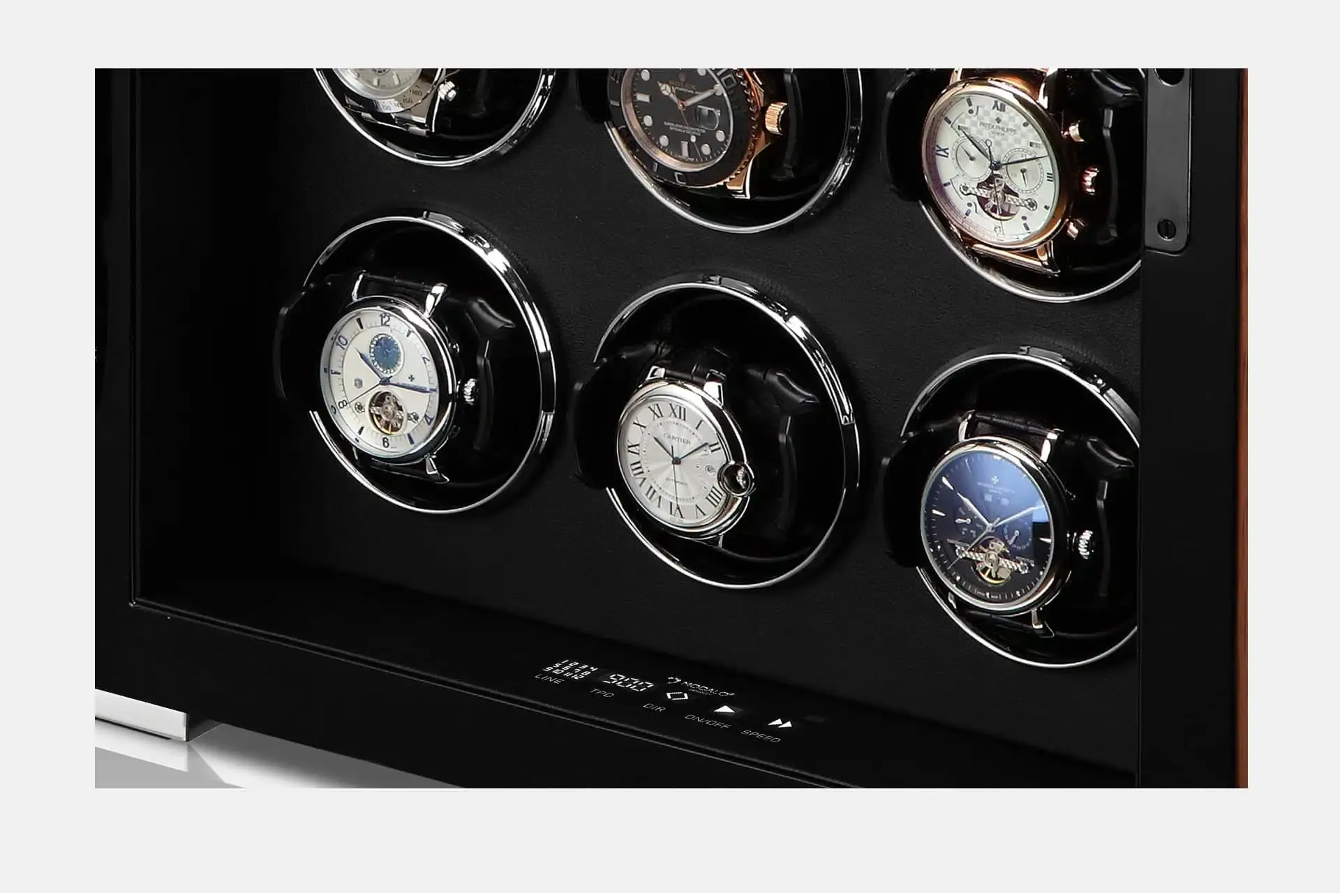 Um verschiedenen Uhrensammlungen gerecht zu werden, können anspruchsvolle Sammler zwischen verschiedenen Größen wählen, die von Uhrenbewegern für 1 Uhr bis hin zu großen Sammler Uhrenbewegern, die bis zu 12 Automatikuhren aufnehmen können. Dank dieser Flexibilität können Uhrenliebhaber einen Uhrenbeweger auswählen, der perfekt zu ihrer Sammlung und ihren Aufbewahrungsanforderungen passt.