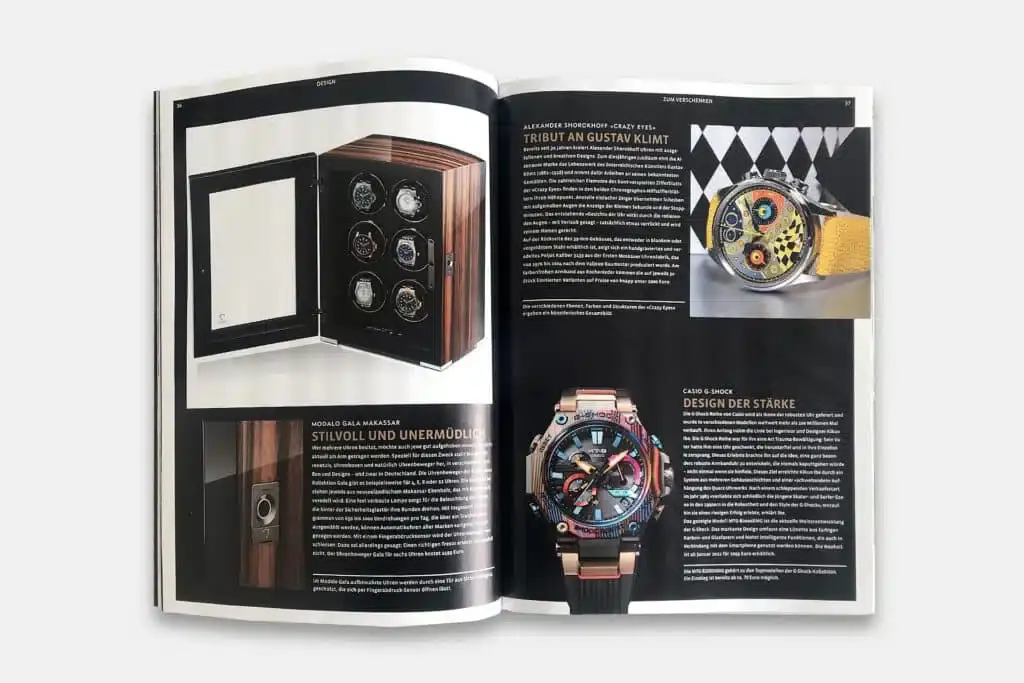 In der 7. Ausgabe des deutschen Uhrenmagazins Armbanduhren präsentiert der Bereich „Design to give as a gift“ eine exquisite Geschenkidee für passionierte Uhrenliebhaber. Neben Premium-Zeitmessern steht die luxuriöse MODALO Watch Winder Kollektion GALA für 6 automatische Uhren unter der Überschrift „Stylish and tireless“ im Mittelpunkt.