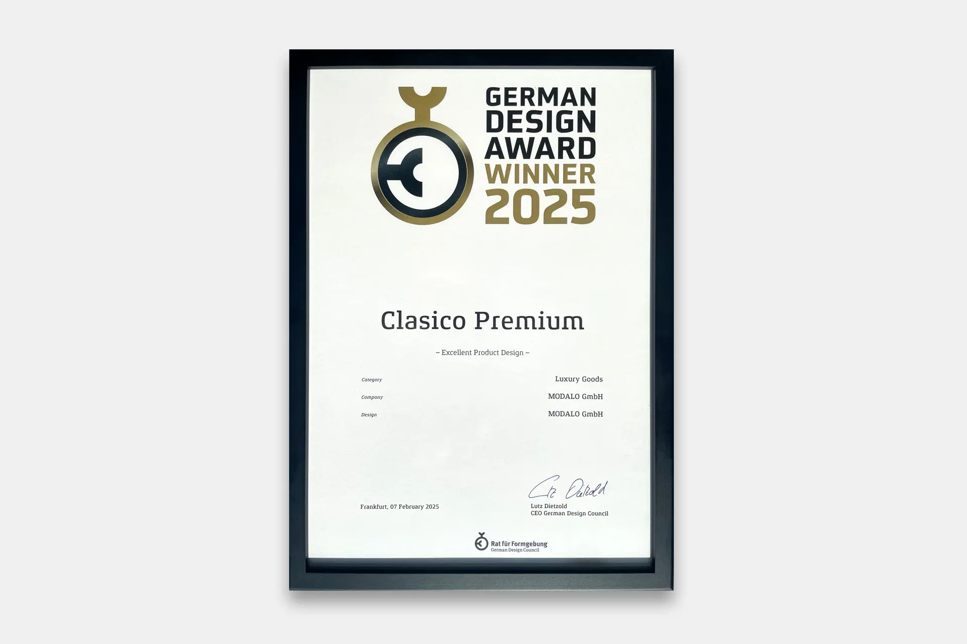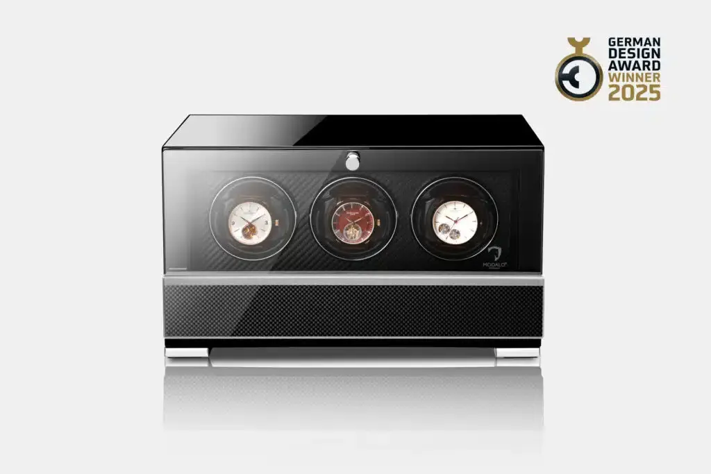 Der CLASICO PREMIUM Uhrenbeweger wurde mit dem renommierten German Design Award 2025 in der Kategorie „Luxusgüter“ ausgezeichnet. Diese hohe Auszeichnung unterstreicht die führende Position von MODALO im Bereich der exklusiven Uhrenaufbewahrung und bestätigt die Rolle als innovativer Vorreiter in der Branche.