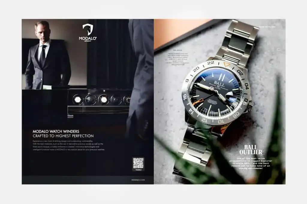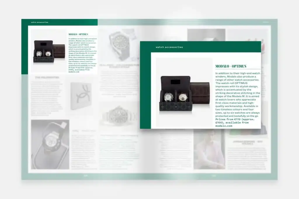 Die MODALO-Kampagne wird in der renommierten britischen Luxusuhrenzeitschrift fortgesetzt, in der der CLASICO Premium Watch Winder vorgestellt wird. Diese fortlaufende Aktion unterstreicht das Engagement von MODALO, seine hochwertigen Uhrenbeweger in angesehenen internationalen Publikationen zu präsentieren.