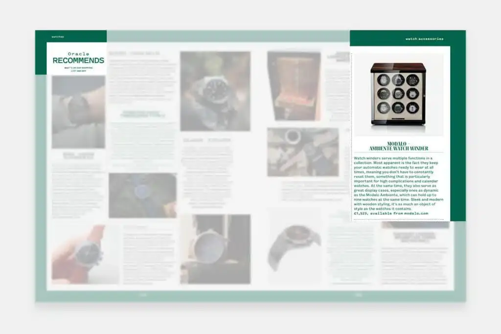 Oracle Time, bekannt für seine Expertise im Bereich Luxusuhren und exklusive Accessoires, hebt den Uhrenbeweger AMBIENTE als Stilobjekt hervor.
