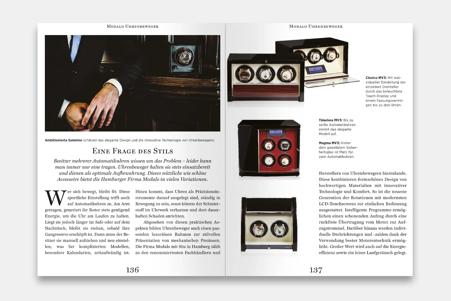 Neben 33 deutschen Uhrenherstellern wird das Unternehmen und die Marke MODALO seit 2016 mit aktuellem Firmenprofil und den neuesten Produktkollektionen in den Bereichen Uhrenbeweger und Uhrenaufbewahrung vorgestellt.